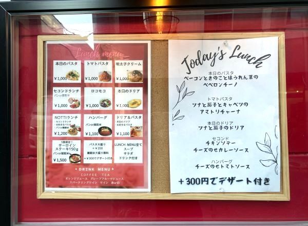 メニューは、パスタ、ドリア、ハンバーグなど10種類。全てにスープ・サラダ・ドリンク付きで、一番高くても¥1,500!(5食限定のサーロインステーキ)