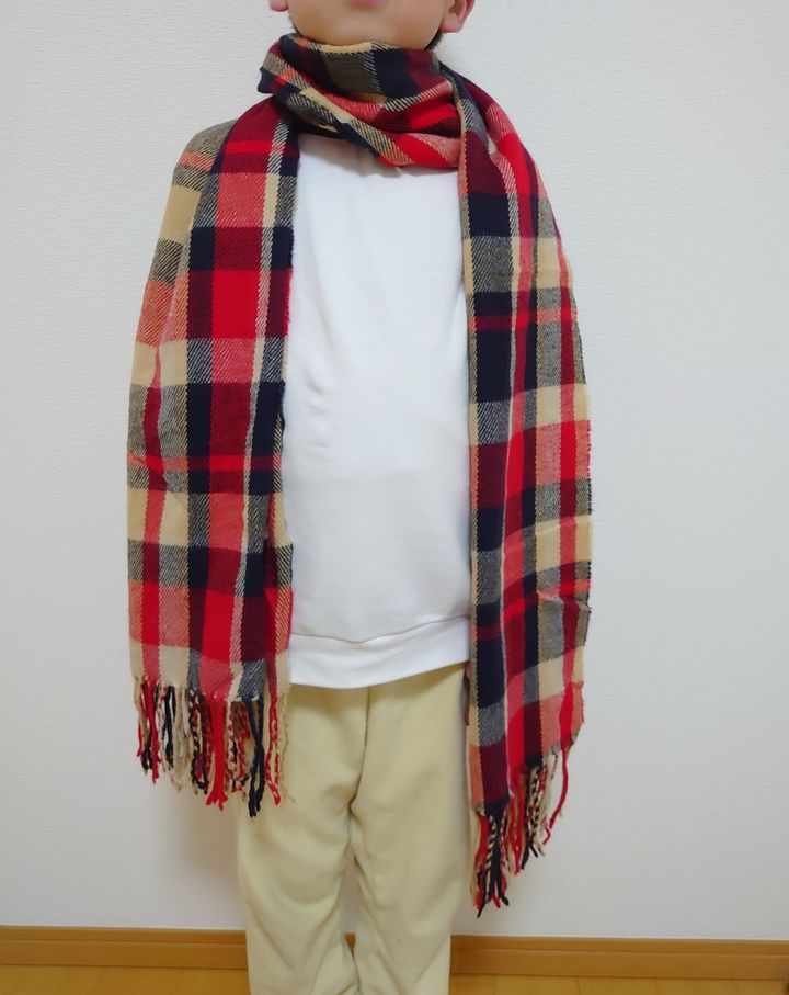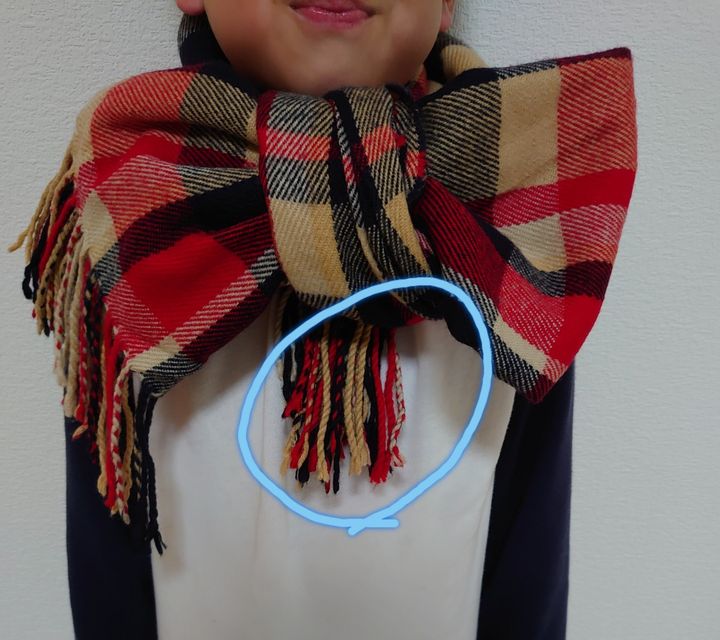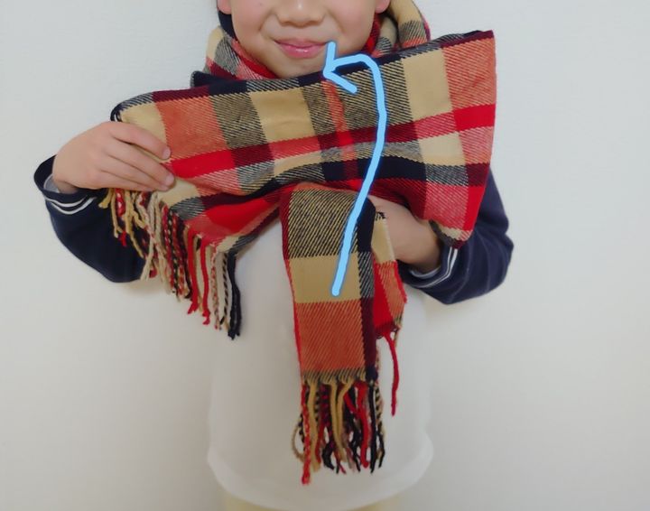 手順4 何もしていなかった方のマフラーを下から上へ、マフラーの中に入れ込む