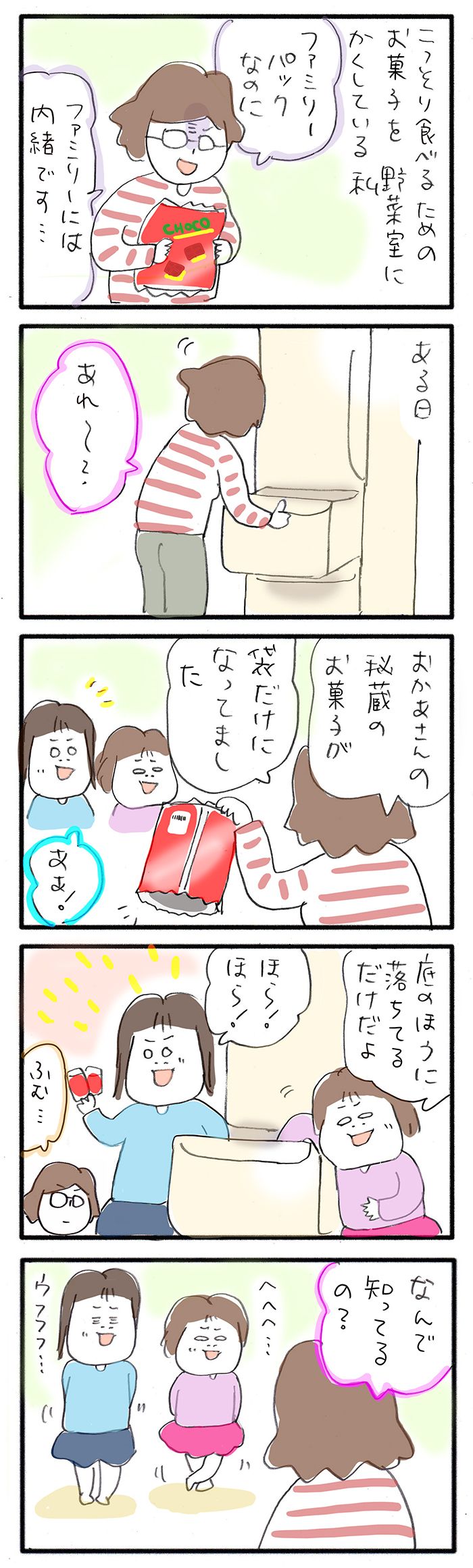 こっそり食べるためのお菓子を野菜室にかくしているのに… ある日わかったこと【よっといで3姉妹・31】
