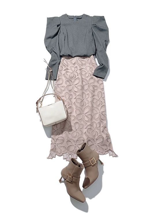 アラサー世代なら、ただ甘いのはもう卒業。上品な印象のグレーを軸にして、嫌味のない甘さでセンスをアピール!