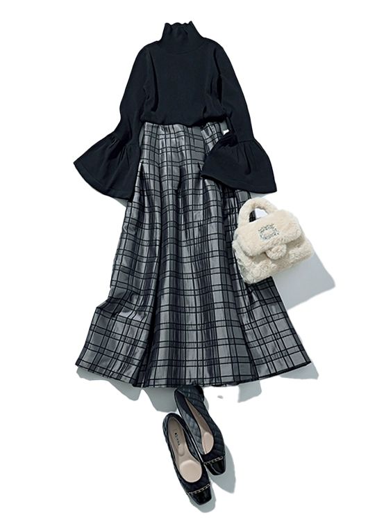 チェック柄スカート¥22,000/アプワイザー・リッシェ ニット¥8,690/ココディール バッグ¥15,950 パンプス¥17,050ともにダイアナ(ダイア 銀座本店)