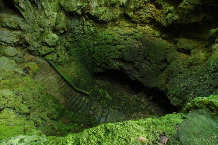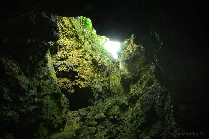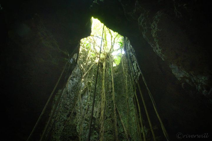 鍾乳石に苔むした岩肌、地上から長く垂れ下がるガジュマルの気根、穴の中は昼間でも薄暗く物静か、どこか空気もひんやりして、神聖な気を感じつつも、どこかゾクッとするふしぎな場でした。