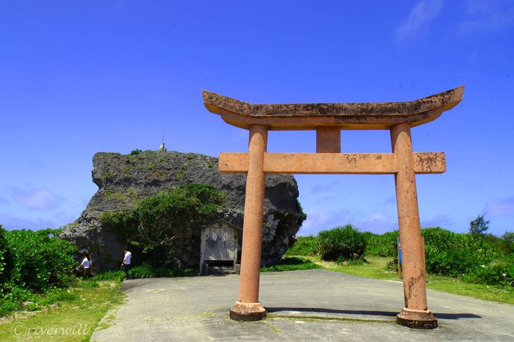 何百年もの昔、宮古島を襲った大津波によって打ち上げられた津波石のひとつと考えられ、いつしかこの自然岩に民間信仰が加わり、現在は大漁・航海・家内安全の祈願が行われています。岩そのものを御神体とし、岩の向こうは東シナ海が広がります。
