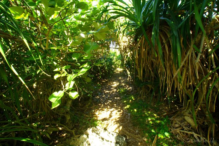 白鳥岬は地形上、南風の影響を受けにくく、また海岸近くでハウスリーフが見られることからダイビングやシュノーケリングスポットとして地元では知られています。一方、海岸沿いに遊歩道が渡されていますが、こちらは途中で橋が崩落し草が伸び放題、残念ながら岬までたどり着くことはできません。