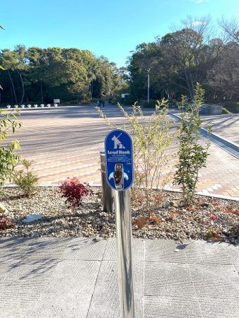 テラス席はワンちゃんとの利用が可能。リードフックは2つあります。