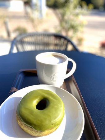 スターバックス ブロンド ラテ with オーツミルクと抹茶クリームドーナツ(295円。季節限定商品)