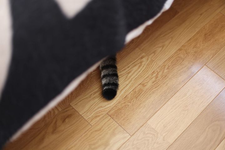そんなそらも掃除機は苦手で、いつもかけ始めると慌ててベッドの下やソファの下に潜り込みます。頭隠して尻隠さず。ベッド下に隠れているつもりのそらの様子です(笑)。