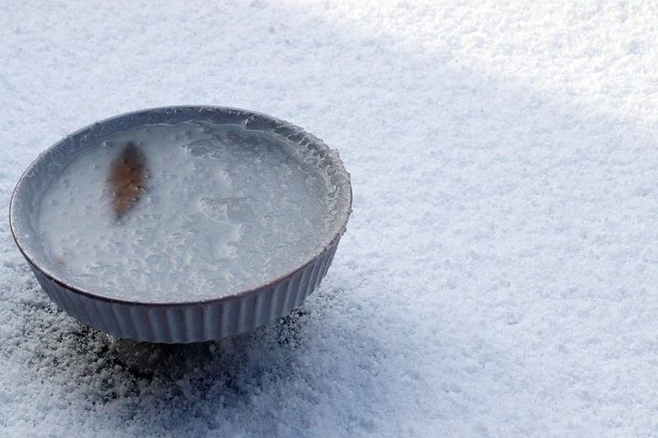 先月のブログから早いもので1か月が経ちました。12月末のブログを立ち上げた次の日の朝、窓を開けたら庭に薄っすら雪が積もっていました。天気予報で雪だと言われていたけれど、何日か前までは暑いくらいだったので「本当かなあ」と思いつつも、寒さに弱い鉢植えを玄関先に入れて、庭の草木には雪囲いを。朝、雪の様子を見に外に出てみると、取り込み忘れた雑貨にふんわり雪が積もっていたり、庭にあるテーブルの上に置いた花器に落ち葉が入ったまま氷が張っていたり。初めて見るこの庭の情景を残しておこうと思い、部屋にカメラを取りに戻り、庭の撮影をしました。