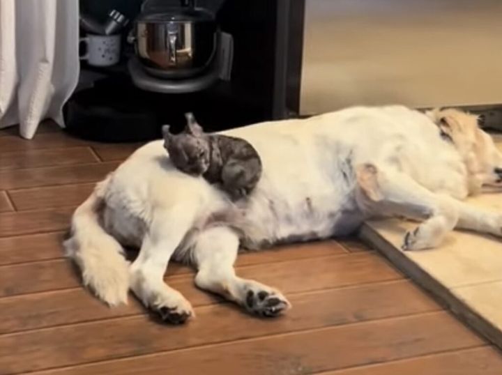 くつろいでいるゴールデンレトリバーの背中に、