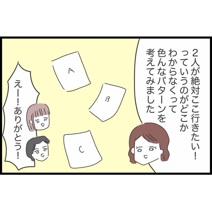 二日酔いでダウンしている友人たちに代わって、旅行の計画を立て直したすみれさん。しかし、すみれさんが考えたプランに友人たちは納得していないようです。
