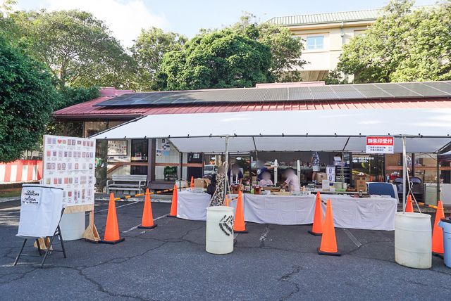 参拝者が増える正月シーズンは、駐車場に設けられたテントでお守りやお札の対応が行われています。特に混み合う三が日は、事前にオンラインで申し込みをするよう推奨されていて、混雑緩和の対策がなされているようでした。それだけ訪れる人が増えるということですね。