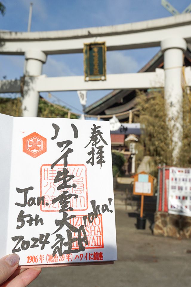 そんなハワイ出雲大社へ初詣に伺いました。この日は2024年1月5日。三が日が過ぎ、混雑も緩和されたタイミングで落ち着いて参拝できました。