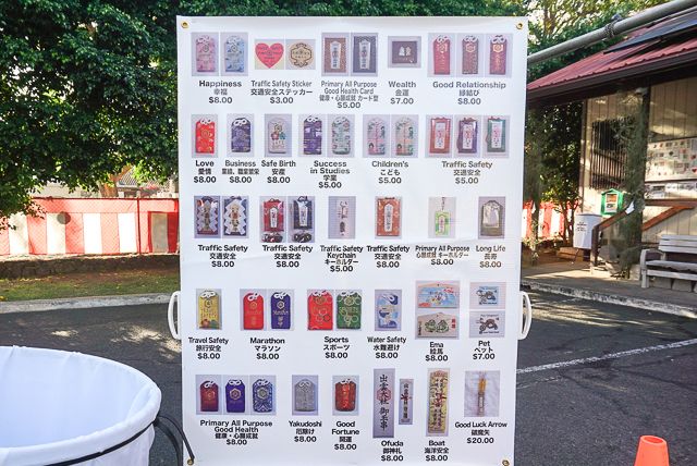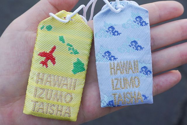 日本の出雲大社と同じお守りに加えて、ハワイ限定のものも見受けられます。