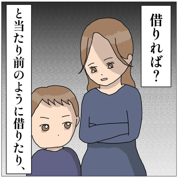 タダで借りることに執着しすぎるママ友に困った体験を漫画にしたものです。
