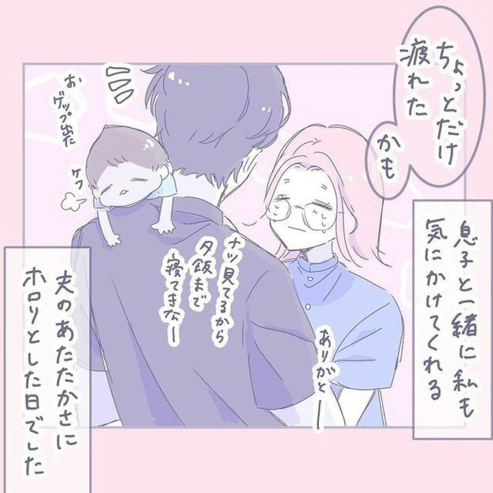 帰宅した夫が、子どものことを気に掛けてくれるのはすごくうれしい気持ちになりますよね。しかし、heracoさんの夫が気に掛けてくれたのは子どものことだけでなく、heracoさん自身のことも気に掛けてくれていたようです。温かい気持ちになりますね。