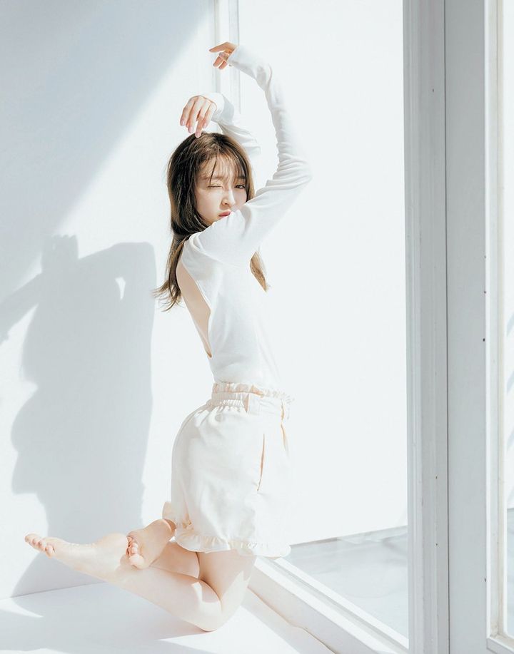 私が憧れるのは、『theフツー』な体型。ちょっとぽっちゃりめで細いわけでもないけれど、肌はツヤツヤできれい。そんないい意味でフツーな女性のカラダがきれいだなと。だから写真集撮影の時もあえてカラダを絞らず、自然な状態で撮ってもらいました。どうしても誰かと比べてしまうけど、最近それがただ疲れるだけだと気づいたんです。写真集でありのままの自分を見てもらってからは、人からどう見られているかがあまり気にならなくなって、心が少し軽くなった気分。人と戦うより、自分と戦う方がずっとラクです。