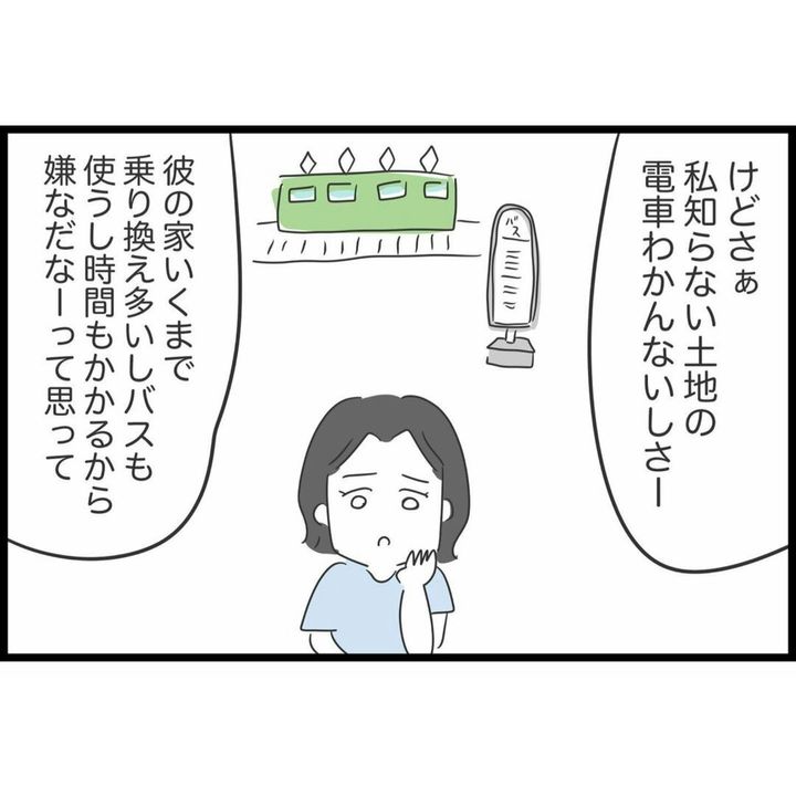 ゆっきーは、彼から「たまには電車で来てほしい」とお願いされます。しかし彼女は、時間やお金をかけて知らない土地に行くのは嫌だと断りました。