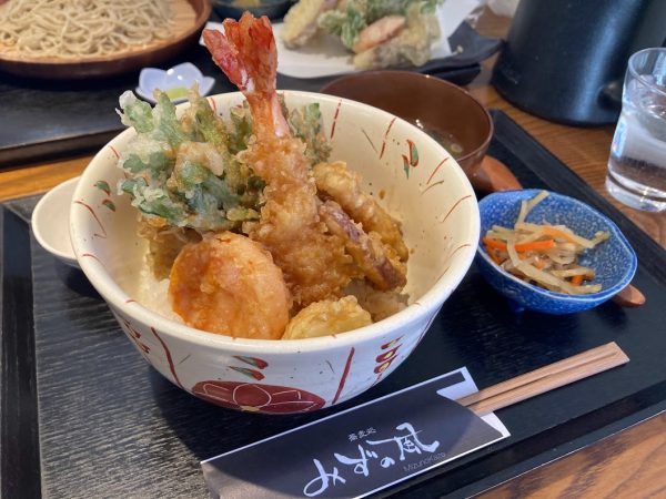 こちらは天丼。魚沼産こしひかりを使った美味しいお米の天丼もいいですよね〜。お蕎麦屋さんの丼ものも美味しいのでそれもありかもしれませんね。