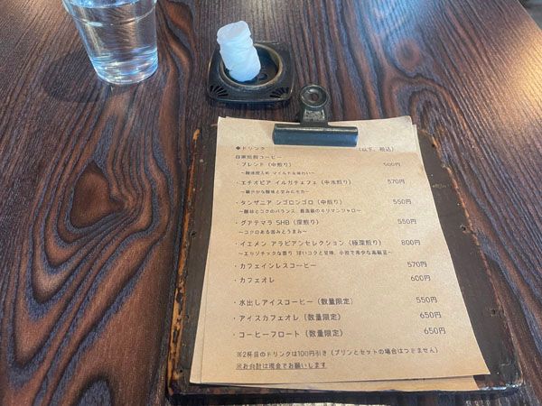 カフェ面白荘のメニュー