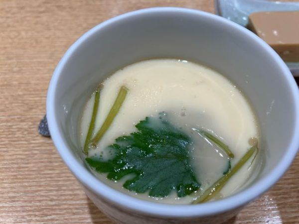 さすがお寿司屋さんの茶わん蒸し。上品な出汁の香り。中に入っているかまぼこ等の具もきれいです。ほんのりあまい栗の甘露煮もよいアクセントになっています。