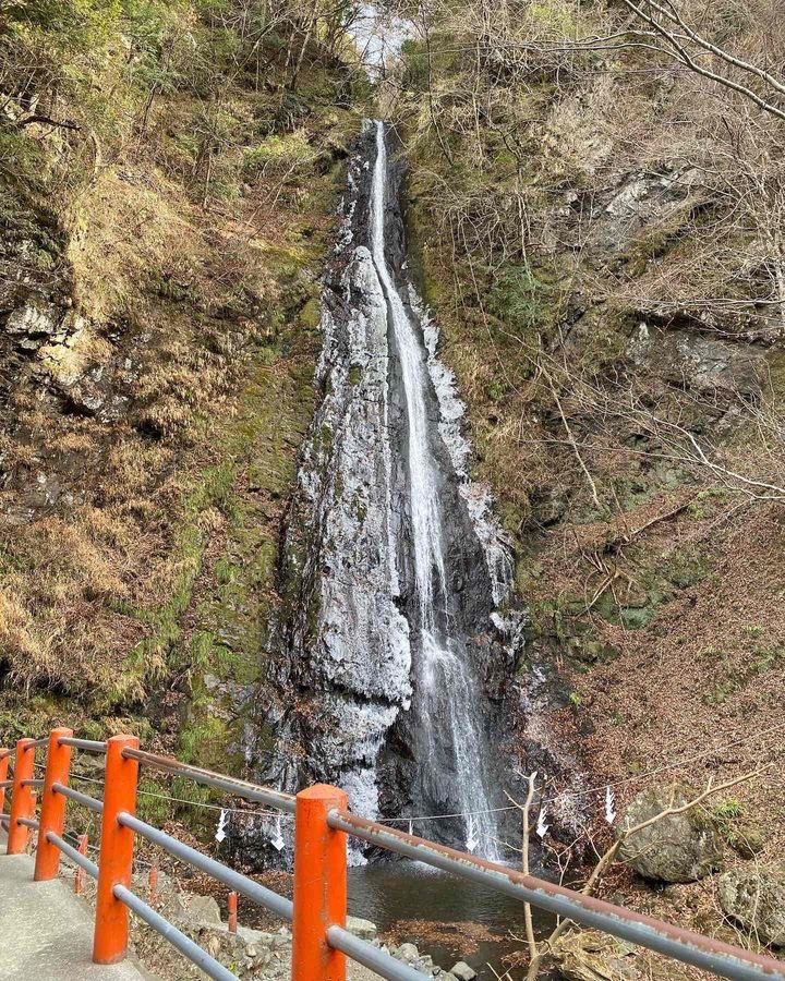 どちらの滝も同じくらいの高さと水量で、迫力満点。雄滝は表面が氷り、氷の下を水が流れている姿が神秘的でした。
