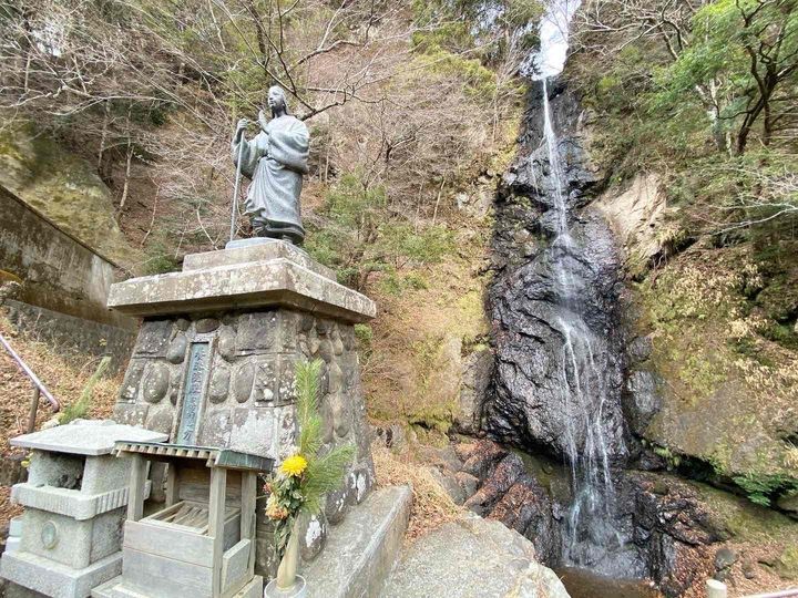 羽衣白糸の滝は、七面山へと続く参道の登山口付近にあります。かつて徳川家康の側室「お万の方」がこの滝に打たれて身を清めたところ、女人禁制だった七面山の決まりを解き登ることができたとされています。そのため、手前の女滝(めたき)にはお万の方の像が建てられています。