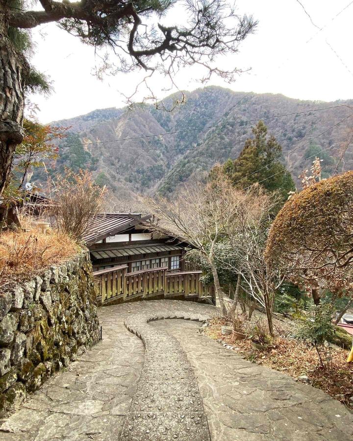 身延山三門前の商店街から車で30分〜1時間ほどかけて「赤沢宿」エリアに移動。赤沢宿は身延山(標高1148m)山麓傾斜の緩い台地上に位置し久遠寺と七面山を結ぶ身延往還の宿場町として発展した場所。七面山は日本二百名山の一つに選定されていおり、お坊さんや参拝者が久遠寺から七面山までの険しい道のりを進んでいく途中に立ち寄ったのが赤沢宿です。