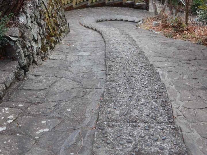 赤沢宿を進む道のりはとにかく急な石畳が続きますが、階段になっているところもあり、歩きやすいように工夫がなされていました。
