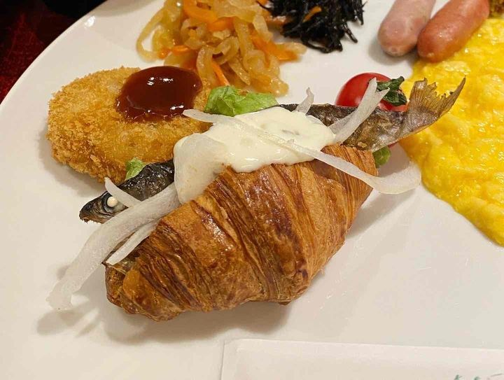 朝食ビュッフェでいただける下部ホテル名物の「山女魚(やまめ)サンド」は、私もとても楽しみにしていました!
