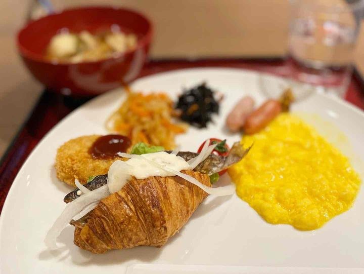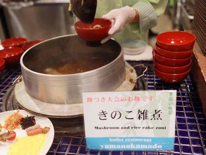 昨晩の千本杵餅つきでついたを使った「きのこ雑煮」「ぜんざい」の提供があったり、焼き立ての食パンやクロワッサンをテーブルまで配りにきてくださったりと、とてもワクワクする朝食タイムを過ごせました。