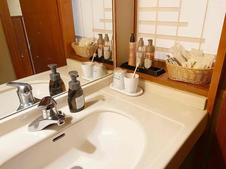 お部屋の洗面台は広くて清潔感があり、クレンジングや化粧水、乳液などのアメニティも充実していて女子旅や家族での旅行にも利用しやすいと感じました。