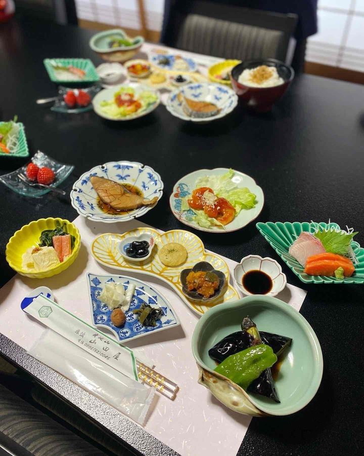 商店街の端にある「旅館 山田屋」でランチをいただきました。旅館の宿泊者ではなくても、気軽に食事だけで利用をすることができる良心的なお店。写真の豪華ランチは要予約ですが、その日すぐに提供いただける「カレー」や「ゆば丼」もありおすすめです。