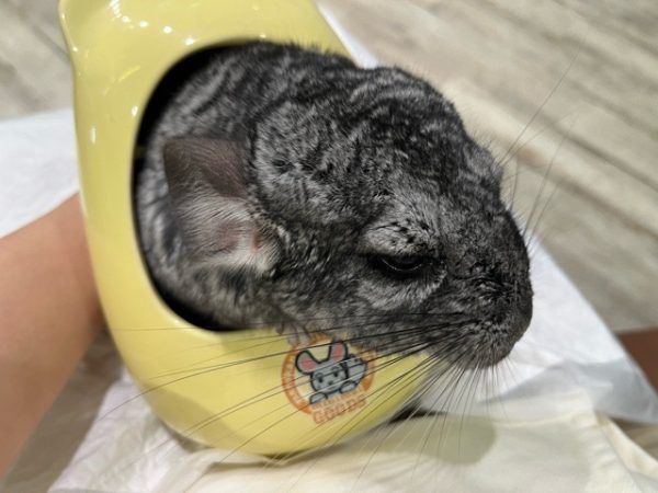 たくさんいる子たちの中でふれあいたい子を見つけたら係の方に伝え、椅子まで連れてきてもらいます。 触り方や注意事項を教えてもらったら優しく触れ合いを。 私が大好きこの子はチンチラです。