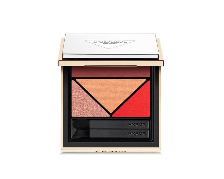 「ついに日本上陸となったプラダ ビューティ。美容業界ではこの春のメイントピックスとしてすっかり話題に。そして、これがまた期待通りの可愛さなわけで。アイシャドウパレットは開けたときのインパクトと感動がスゴイ! 絶妙なカラーリングで久しぶりにわくわくしました。とにかく発色がいいし、肌にふわっとのる感じも◎。なかでも僕の推しは06で、左のキラキラと真ん中のベージュを混ぜ合わせてアイホールや下まぶたに入れ右の赤を目尻の際だったりにポイントで足すという使い方にハマり中。この赤、一見派手に見えますが、大人でも浮きません。付属の筆で眉毛にさっとのせてもおしゃれだし、遊び心をプラスする気持ちでぜひ取り入れてみてほしいですね」