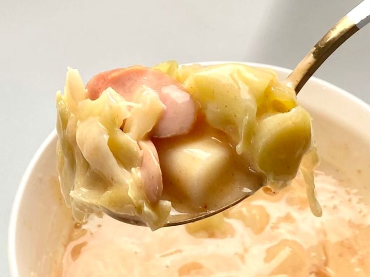 食べてみると、白菜は大きめにカットされていて、歯ごたえがあります。トッポギはモチモチ。ソーセージはジューシーな味わいです。