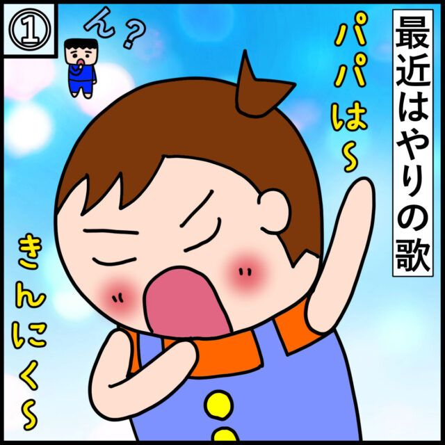 筋肉ムッキムキって・・誰?5歳息子がはまってる自作の歌がオレの心に大ダメージなのだが。|みーぱぱ子育て漫画