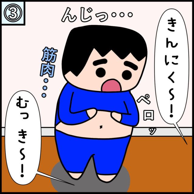 3. 筋肉ムッキムキって・・誰?5歳息子がはまってる自作の歌がオレの心に大ダメージなのだが。|みーぱぱ子育て漫画