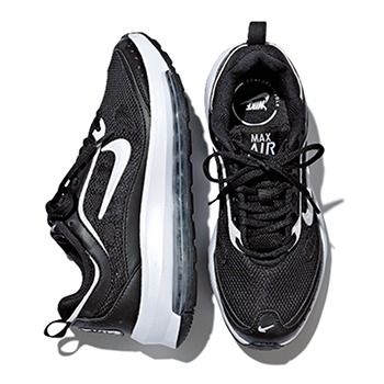 エアソールモノトーンスニーカー 13,200円/NIKE SPORTSWEAR(NIKE カスタマーサービス) エアソールが効いた「透明感のある」黒。エアソールの透明クッションが抜けになりつつ、足を衝撃からサポート。小さめスウッシュもポイント。