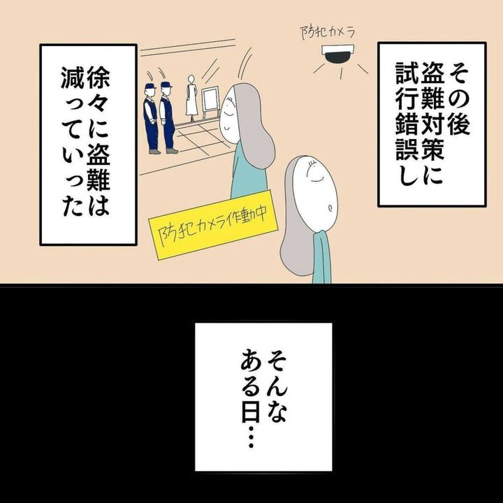 商品や売り場のイメージを守りつつ、盗難防止する難しさを実感させられるエピソードでした。お店側は盗難によって商品を失っただけでなく、被害届を出すためにたくさんの時間を割いていることを初めて知りました。少しでも盗難被害が減ることを願うばかりですね。