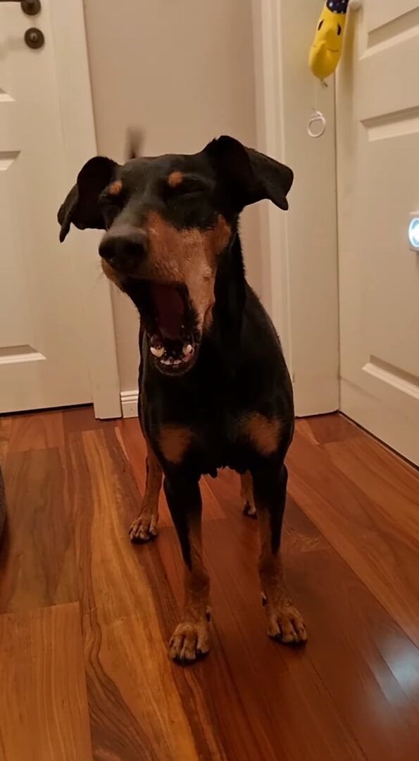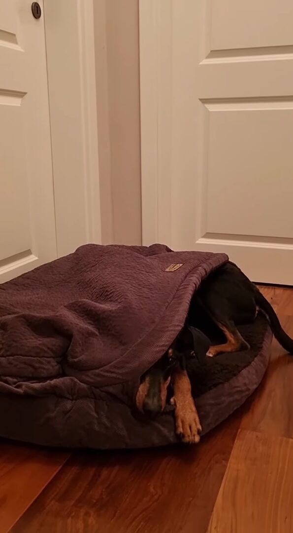 動画が撮影されたのは、ドイツのとあるお宅。 愛犬のジャーマンピンシャー『』が寝る前の様子を捉えた映像です。