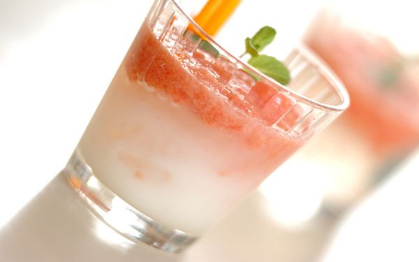 カマンベールチーズや牛乳、プレーンヨーグルトで作る飲みごたえのあるドリンクです。ピーチリキュールの甘い香りがとても上品。ミキサーにかけるだけの簡単さも魅力です。子ども用にはリキュールを省き、家族みんなで味わいましょう。