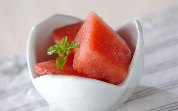 スイカにリキュールをかけると、ワンランク上の美味しさにアレンジできますよ。スイカのあっさりした甘みにホワイトキュラソーの爽やかさが好相性。グレープフルーツやオレンジなど数種類の果物と組み合わせても良いですよ。