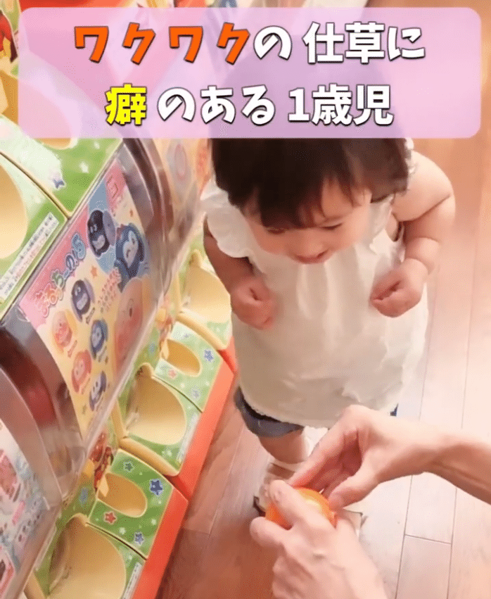 1歳の女の子が、大好きなばあばとガチャガチャに挑戦! 何が出てくるかな……!? ワクワクしている仕草がかわいすぎます♡