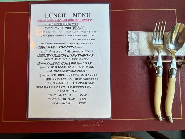 店長さんがお一人でされていらしゃいます。ゆっくりお食事とおしゃべりを楽しむ素敵なお店見つけました。お店の前に駐車場あります。皆様も是非おいしいパスタとドルチェを楽しまれてください。