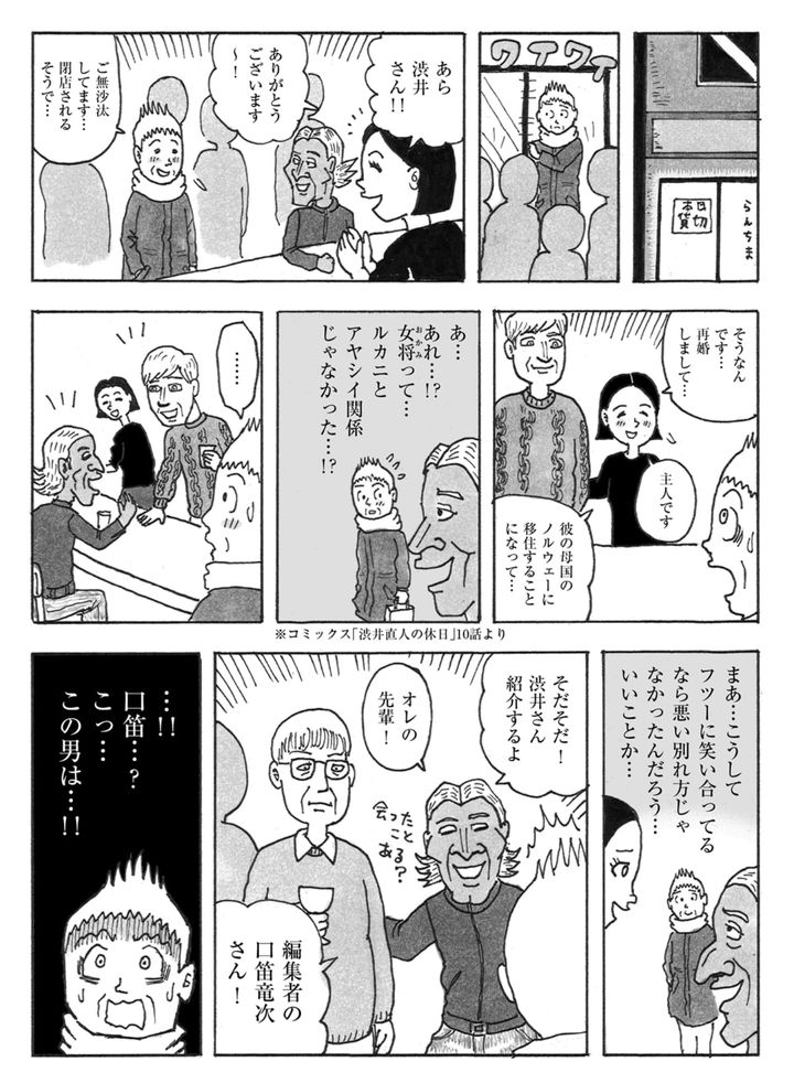 渋谷直角さん著、『デザイナー 渋井直人の休日』の最新話をWEBで公開! 52歳・独身のカルチャー中年渋井さんの、愉快でちょっぴりトホホな日常を描く本作は、オトナミューズ界隈にもファンの多い人気連載です。