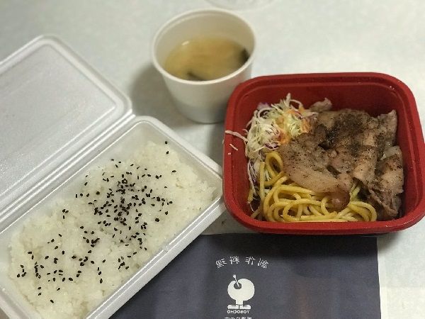 等がありました。ライス・お味噌汁・おしんこ付きで、お持ち帰りもできます。