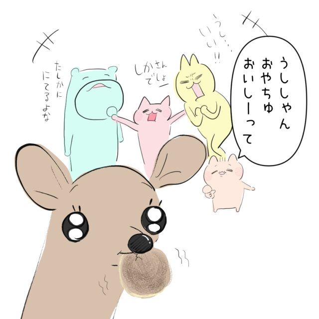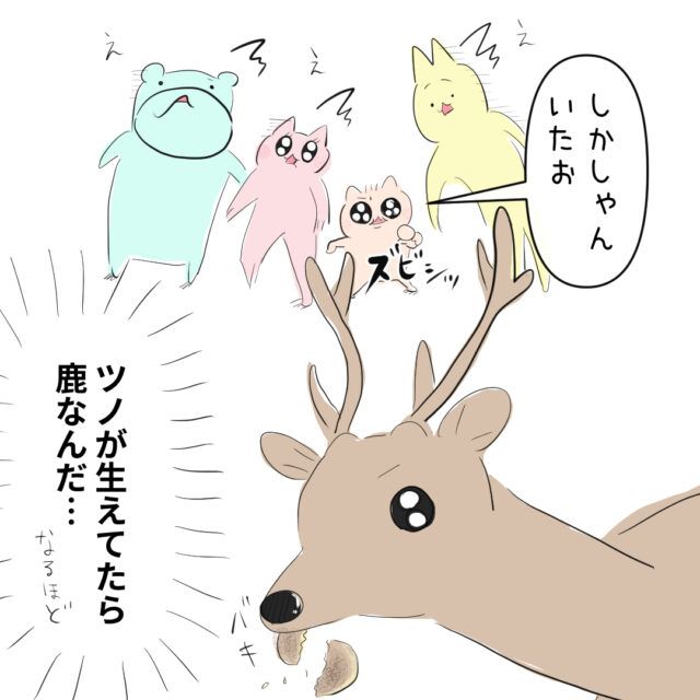 なるほど、ツノが生えてたら鹿なんだ・・・。