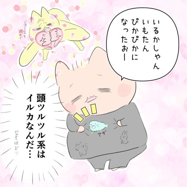 「いるかしゃん、いもたんぴかぴかになったおー」