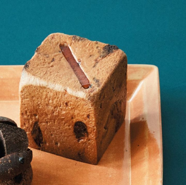 『daco』は、福岡発の大人気ベーカリー『アマムダコタン』のセカンドブランド。1人でもいろんなパンが楽しめるようにと、あえての小ぶりサイズがかわいらしい。大きく口を開けたパンの間にゴロッと挟まっているのは、チョコレートブランド『Minimal』の「NUTTY」。ナッツのような風味で、大きさといい、ワイルドな歯ごたえといい、満足感。合わせるパンには、NUTTYとの一体感を高めるべく、ガーナ産の高品質カカオパウダーを使用。もっちり柔らかな生地がチョコの食感を引き立てる。
