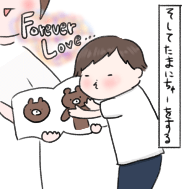 3. 【前編】え・・ちゅー?母の努力の賜物!ぬいぐるみ大好き人間に成長した1歳息子の謎行動|ねむりひつじの子育て絵日記